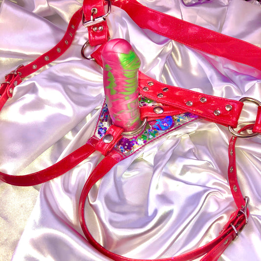 Slick, Shiny, and Glittering: Welcome to the squeaky and sexy world of GNAT Glitter Kink. Everything here is PLASTIQUE, baby! We delight in the constrictive cinch and heavy hardware of a glitter vinyl harness. Vinyl & PVC are closer to the slick and sweat-inducing erotic experience of latex, so get ready to turn yourself into the dolly of your dreams, and slip into something sparkly!